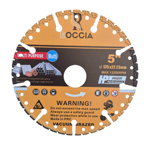 Disque ROCCIA multi matériaux Ø125 mm x 22,23 mm : pour une coupe rapide et nette de l'acier, de la fonte, des plastiques, du bois, et autres matériaux courants.