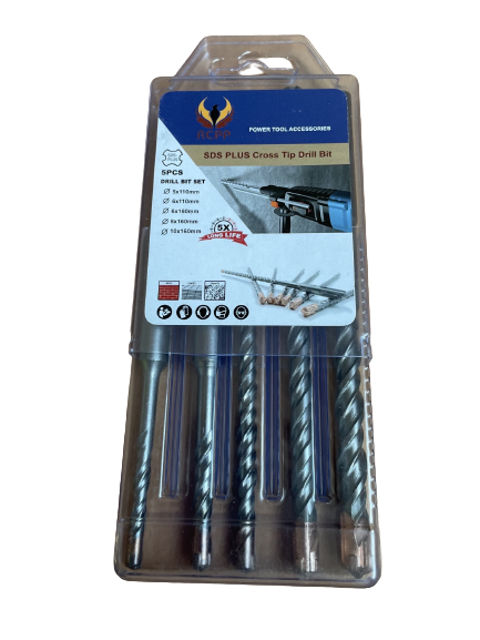 Coffret de 5 mèches ROCCIA SDS+ pour perforateur, idéal pour le perçage du béton, de la brique et des matériaux durs. Performances et durabilité.