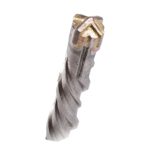Foret béton SDS Plus à 4 taillants, idéal pour le forage rapide et précis dans le béton armé, la pierre et la brique. Évacuation efficace des débris.