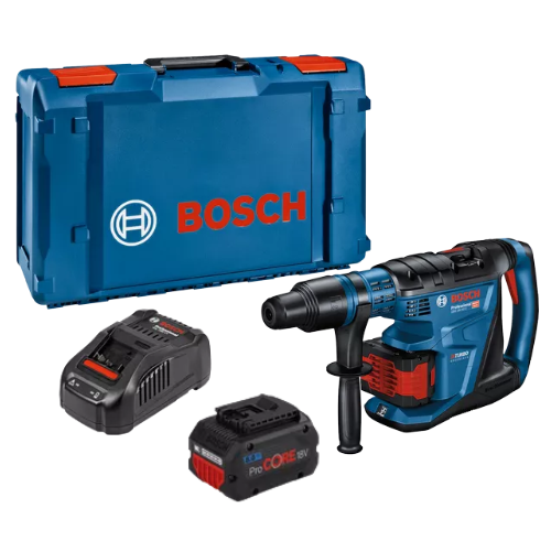 Le GBH 18V-40 C BITURBO Professional allie puissance filaire et mobilité sans fil, livré avec 2 batteries ProCORE18V 8.0 Ah, 1 chargeur rapide GAL 1880 Cv et un coffret L-BOXX.