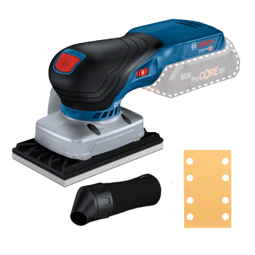 Ponceuse vibrante 18V ergonomique et équilibrée, dotée d’un moteur sans charbon pour une progression rapide et de trois plateaux interchangeables pour une grande polyvalence.