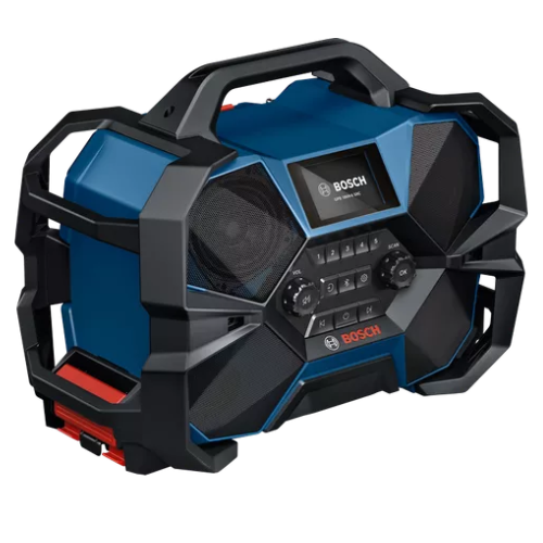 Radio de chantier puissante Bosch GPB 18V-6 SRC : son de qualité, DAB+, Bluetooth®, charge batteries 12V/18V, IP54, subwoofer intégré, compatible L-BOXX.